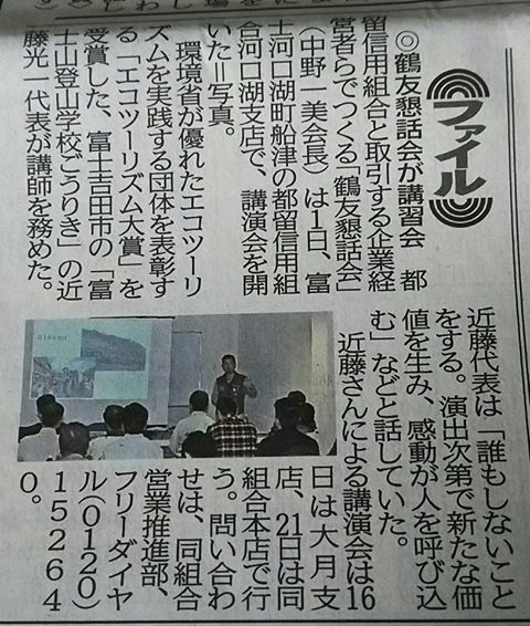 初心者にもおすすめの富士山専門ガイドツアー トップ > フォトアルバム > 講演・受託事業 > 2016年 > 都留信用組合大月支店「鶴友懇話会」様