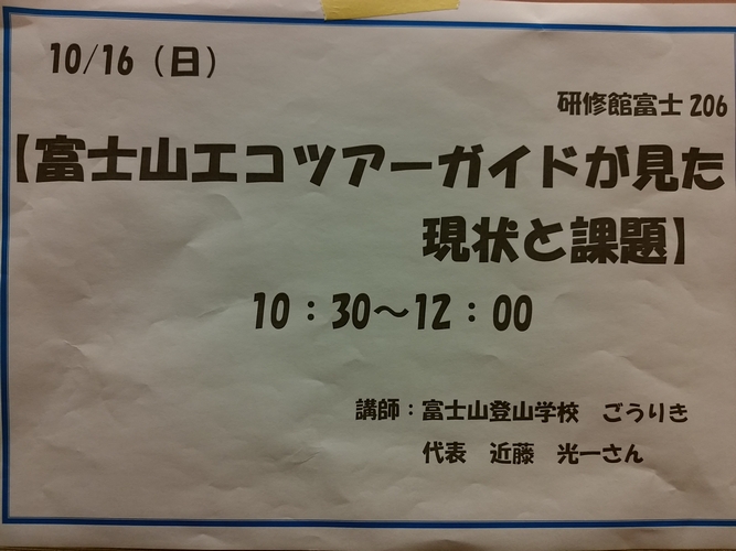 初心者にもおすすめの富士山専門ガイドツアー トップ > フォトアルバム > 講演・受託事業 > 2016年 > CONE全国フォーラム in 御殿場様「分科会・富士山エコツアーガイドが見た現状と課題」